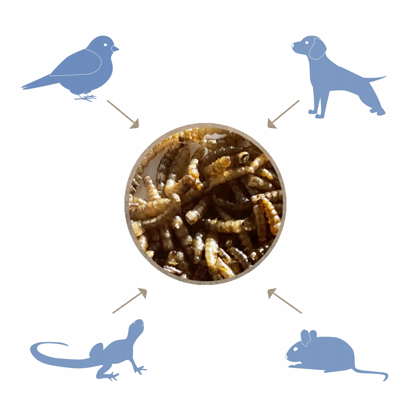 Пам’ятайте, що для домашніх і сільськогосподарських тварин сушений борошнистий черв’як є лише додатковим додатком до збалансованого раціону та є джерелом здорового та природного, добре засвоюваного протеїну та жиру.