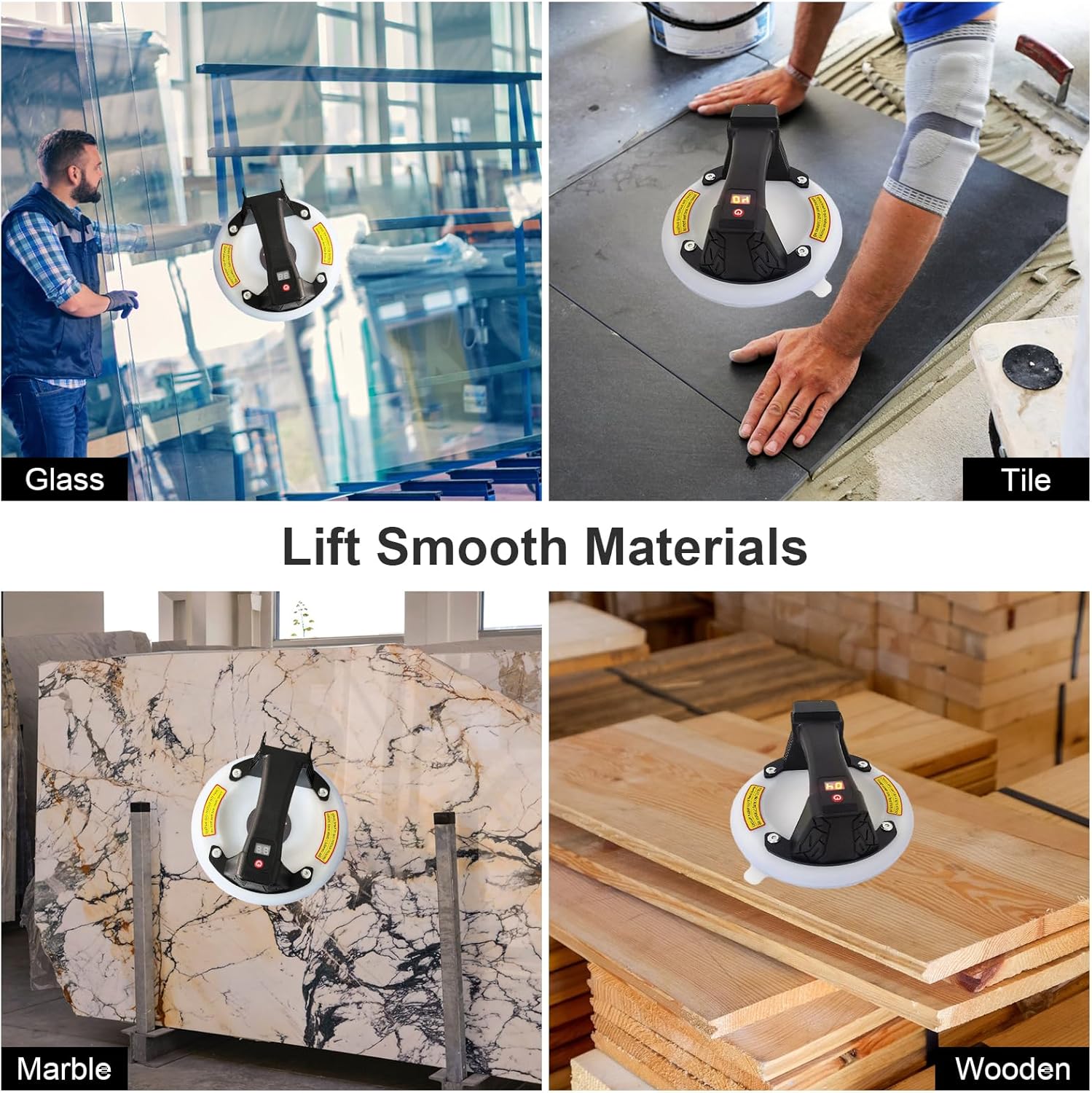 Широке застосування: ця електрична скляна присоска виготовлена з трьох шарів силіконового матеріалу та має ширший спектр застосування. У порівнянні з іншими гумовими присосками, більшість гумових присосок можуть піднімати лише гладкі матеріали, але наша електрична присоска з тришарового силікону може піднімати не лише гладкі матеріали (наприклад, керамічну плитку, скло, алюмінієві плити), сталеві пластини, підлогу тощо), а також може піднімати грубі матеріали (такі як кам’яні плити, гіпсокартонні плити тощо).
