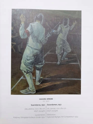 P> Опис: Офіційна каталог Виставка Виставка Виставка Комітету з питань польської мови до польоту Комітету з питань польської мови. Олімпійський з нагоди 100 -річчя своєї діяльності. На виставці представлені твори спортивного та олімпійського мистецтва з колекцій музею спорту та туризму у Варшаві. Кожна з творів (картина, малювання, скульптура, гобелени, дерев’яні вирізки, мозаїка, ліноки та інші) була представлена на фотографії разом із інформацією про його тип, матеріал, з якого він був зроблений, розміри та автор. Виставки, представлені в книзі, включали твори наступних художників: Войціх Садлі, Властіміл Хофман, Павел Дадлес, Францисек Стрінкевич, Адам Марчьянський, Джозеф Королькевич, Марія Буджакова та Барбара Левітто-Нідерсська. Тексти пісень та підписи в каталозі були написані двома мовними версіями - польськими та англійською мовою.