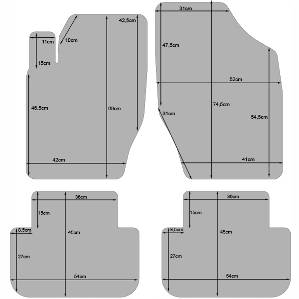 Килимки мають форму, адаптовану до підлоги кількох моделей автомобілів (згідно з каталогом Motohobby) - вони не є, тому вони призначені для конкретної моделі автомобіля. Комплекти (або фасади) спеціалізованих килимків можна знайти на інших наших аукціонах.
