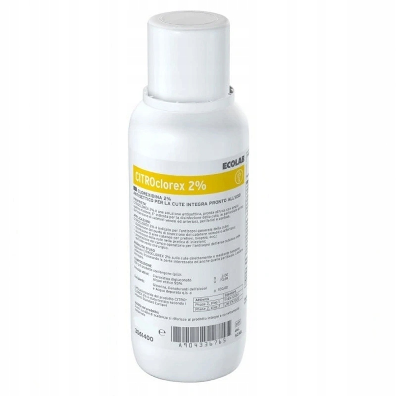 Еколаб - Цитроклорекс 2% 500 мл - високоефективний безбарвний дезінфікуючий засіб, призначений для дезінфекції шкіри, із залишковою дією. Призначений для використання перед ін'єкціями, пункціями, акупунктурою, забором крові, щепленнями, татуюванням, пірсингом і перманентним макіяжем і т.д. Не розбавляється. Діюча речовина - двовідсотковий розчин хлоргексидину диглюконат і етилового спирту. Ця формула гарантує швидкий дезінфікуючий ефект як проти грампозитивних, так і грамнегативних бактерій. Крім того, він активний проти туберкульозу, дріжджів, оболонкових вірусів, включаючи HBV, HCV та ВІЛ. Препарат швидко висихає, діє відразу і має тривалу дію. Властивості: