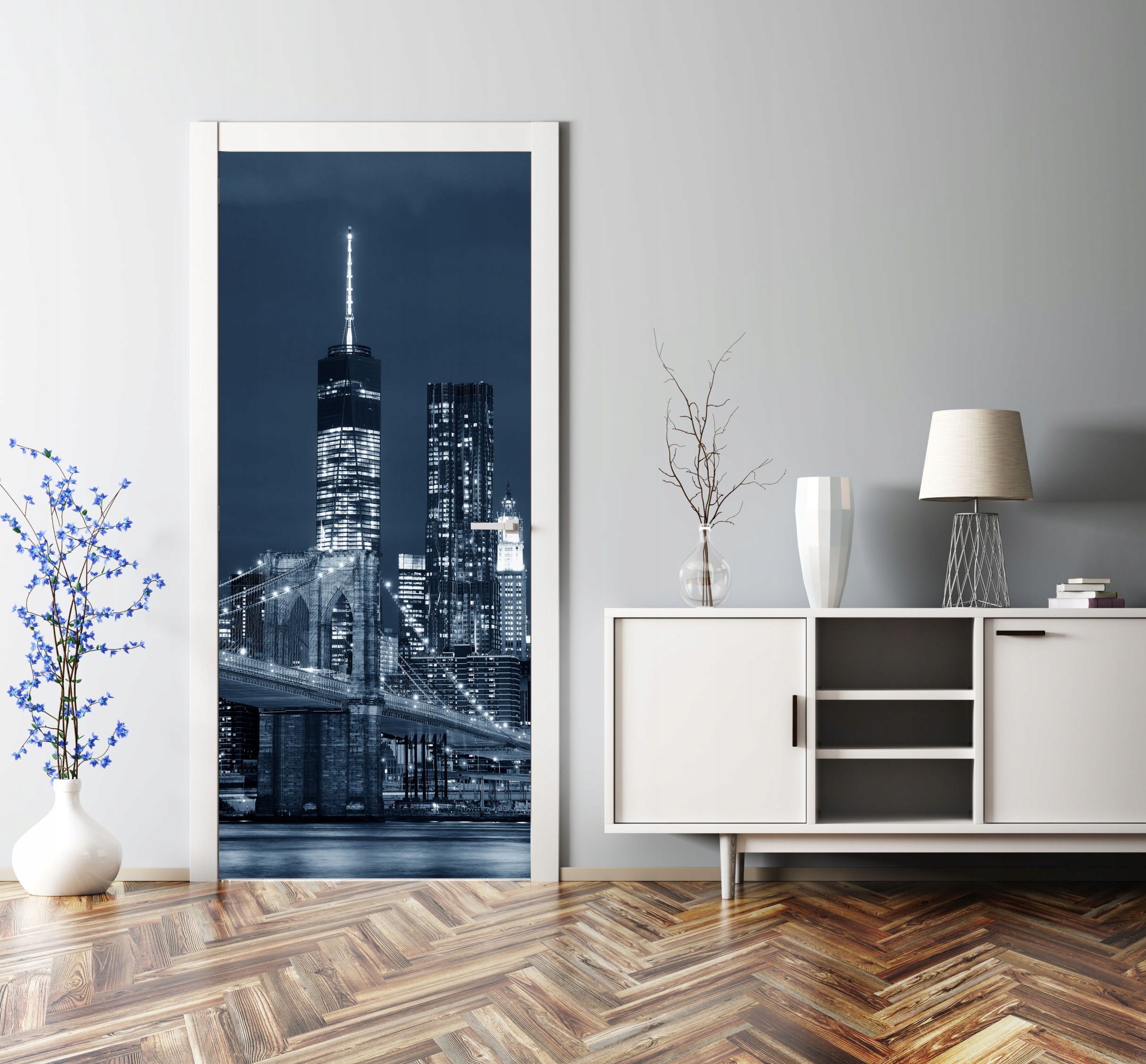 CITY AT NIGHT BRIDGE фотошпалери на дверях шпон фольговані