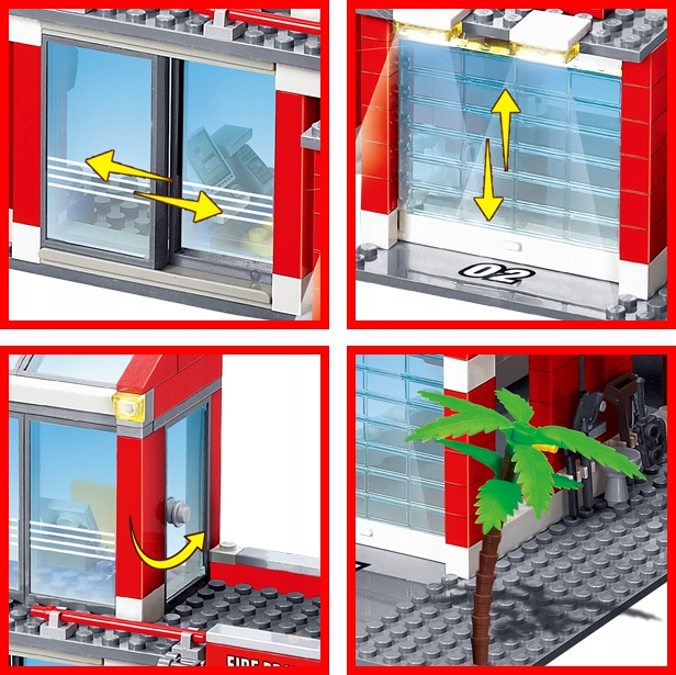 - ⭐На даху є вертолітний майданчикз якого можуть злітати та приземлятися літаки, рулонні двері двох паркувальних місць можна відкривати вгору та вниз , щоб транспортні засоби могли в’їжджати та виїжджати, і відкривати двері та вікна офісу. Багато цікавих деталей оживляють цю пожежну бригаду.
