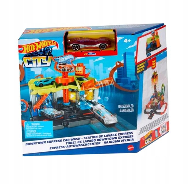 • Комбінуйте набір Hot Wheels City Downtown Express Car Wash Set з іншими наборами, щоб створити унікальний світ веселощів і пригод із чудовими функціями, які додають задоволення! Кожен комплект продається окремо.