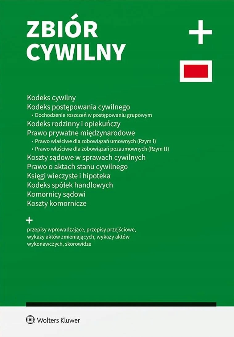 Практичний збірник найважливіших нормативно-правових актів у галузі цивільного права. Надає інформацію про внесені зміни. Система позначення нових нормативних актів значно полегшує щоденну роботу юриста. Додатковими перевагами книги є покажчики до законів і назв, що супроводжують окремі статті, чітке оформлення, зручний формат, м’яка обкладинка з клапанами, які можна використовувати як закладки. Зміни до Цивільного кодексу ПЛЮС (26 редакція) ЦИВІЛЬНИЙ КОДЕКС від 29 квітня 2024 р. - Закон від 20 березня 2024 р. про внесення змін до Закону про Цивільний кодекс, Закону про споживчий кредит та Закону про споживчі ломбардні кредити (Вісник законів, п. 653) від 17 липня 2024 р. - оголошення Голови Сейму Республіки Польща від 21 червня 2024 р. про оголошення єдиного тексту Закону - Цивільний кодекс (Законодавчий вісник, ст. 1061) від 29 серпня 2024 р. - Закон від 24 липня 2024 р. про внесення змін до Закону про задоволення позовів у груповому провадженні та деяких інших законів (Законодавчий вісник, ст. 1237) ЦИВІЛЬНИЙ ПРОЦЕСУАЛЬНИЙ КОДЕКС від черв. 13 2024 р. - Закон від 23 травня 2024 р. Про енергетичний ваучер та внесення змін до деяких законів щодо обмеження цін на електроенергію, природний газ та централізоване опалення (Законодавчий вісник, п. 859) від 29 серпня 2024 р. - Закон від 24 липня 2024 р. про внесення змін до Закону про розгляд позовів у групових провадженнях та деякі інші акти (Законодавчий вісник, п. 1237) від 1 жовтня 2024 р. - Закон від 15 травня 2024 р. про підтримку батьків у професійній діяльності та у вихованні дітей - «Активний батько» (Вісник законів, поз. 858) від 23 жовтня 2024 р. - повідомлення Голови Сейму Республіки Польща від 10 жовтня 2024 р. про оголошення єдиного тексту Закону - Цивільно-процесуальний кодекс (стат. 1568 Законів) від 1 листопада 2024 р. - Закон від 9 травня 2024 р. про внесення змін до Закону про систему соціального забезпечення та деякі інші акти (стат. 863 Законодавчого вісника) від 10 листопада 2024 р. - Закон від 12 липня 2024 р. - Положення, що вводять Закон - Закон про електронні комунікації (Законодавчий вісник, поз. 1222) від 1 січня 2025 року - Закон від 18 листопада 2020 року про електронні поставки (Законодавчий вісник, поз. 2320 із змінами) від 18 квітня 2026 року - Закон від 5 серпня 2015 року про внесення змін до Закону про конкуренцію та захист прав споживачів та деякі інші акти (Законодавчий вісник, п. 1634) ПОВЕРНЕННЯ ПОЗОВІВ У ГРУПОВОМУ ПРОВАДЖЕННІ від 29 серпня 2024 р. - Закон від 24 липня 2024 р. про внесення змін до Закону про розгляд позовів у груповому судочинстві та деяких інших актів (Дюсник законів, поз. 1237) від 7 жовтня 2024 р. - оголошення Голови Сейму Республіки Польща вересня 30 червня 2024 р. про оголошення єдиного тексту Закону про розгляд позовів у груповому провадженні (Вісник законів, поз. 1485) СУДОВІ ВИТРАТИ У ЦИВІЛЬНИХ СПРАВАХ від 28 червня 2024 р. - оголошення Голови Сейму Республіки Польща від 11 червня 2024 р. про оголошення єдиного тексту Закону про судові витрати в цивільні справи (Закон. вісник, ст. 959) від 29 серпня 2024 р. - Закон від 24 липня 2024 р. про внесення змін до Закону про провадження позовів у груповому провадженні та деякі інші акти (Закон. Закон - Цивільний кодекс та деякі інші акти (Законодавчий вісник, позиція 1615) Земельний та іпотечний реєстр I ІПОТЕКА від 1 липня 2024 року - Закон від 12 травня 2022 року про внесення змін до Закону про земельні та іпотечні реєстри та іпотеку та Закон про об