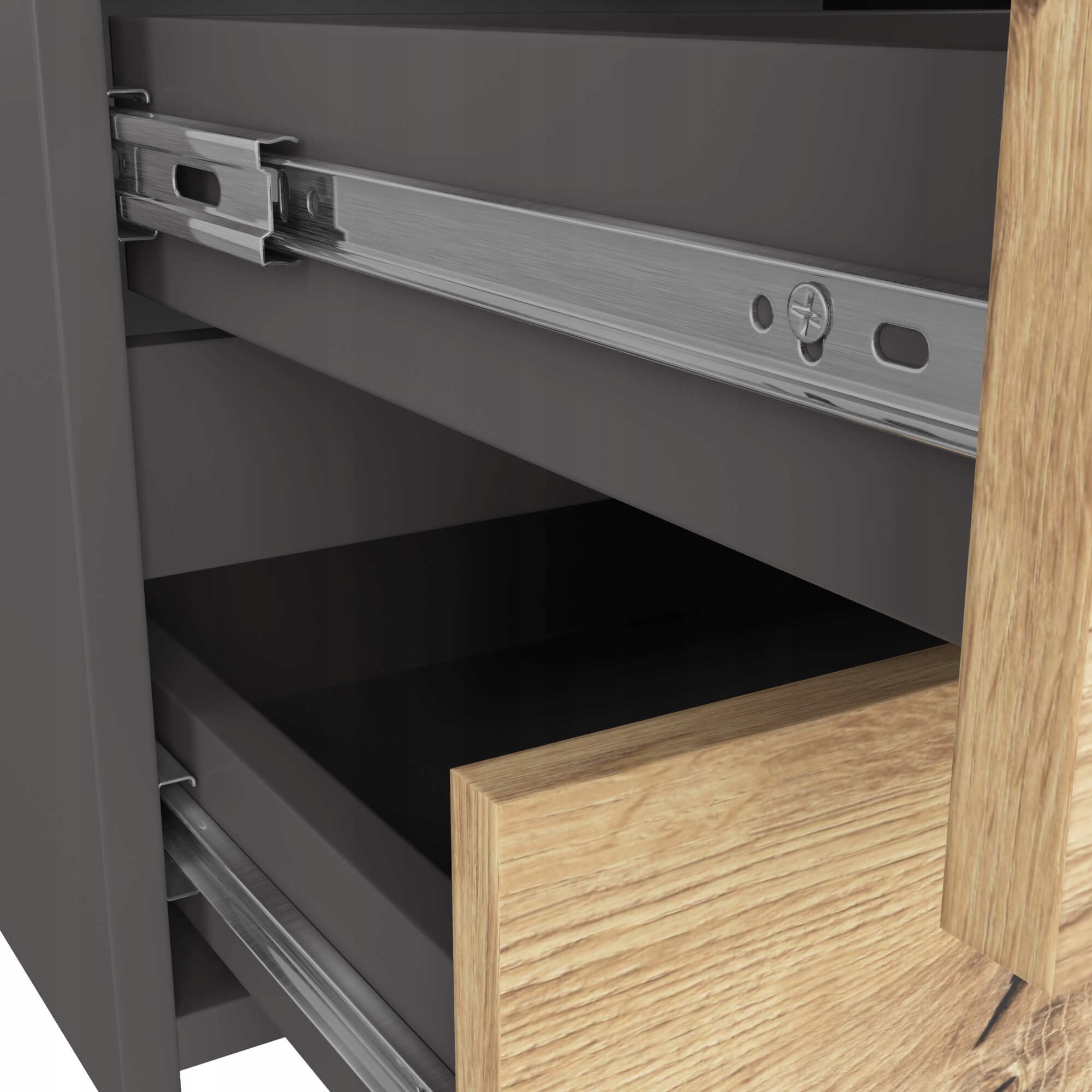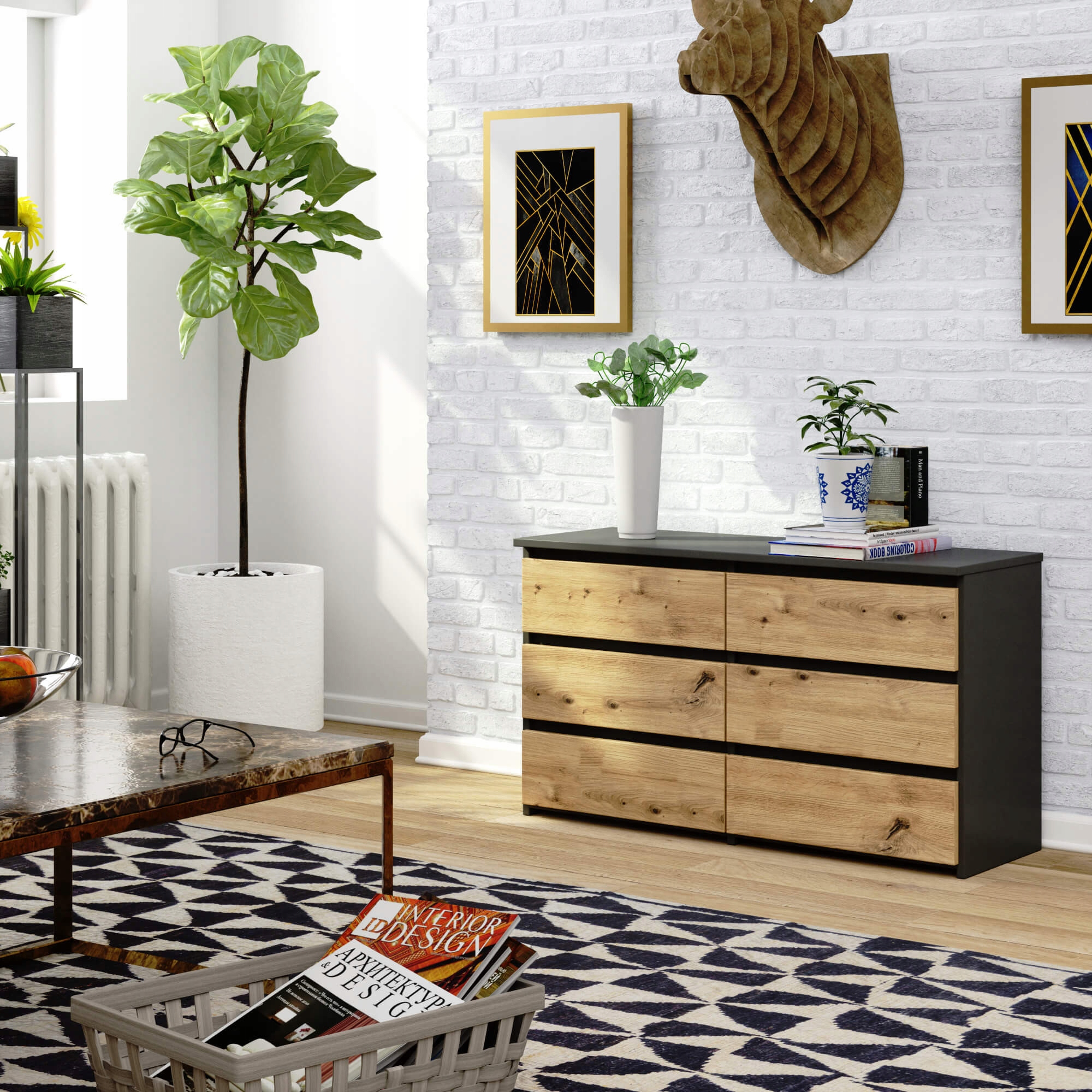 У меблевій промисловості особлива увага приділяється функціональності виробів та їх високим естетичним цінностям. Прекрасним прикладом цього є комод CL 100 см. Цей практичний предмет меблів виготовлений зі стійкого до стирання ламінованого картону, що гарантує його довговічність і міцність. Шість містких ящиків вміщають різноманітні книги, документи та дрібнички. Деякі наші клієнти вирішують зберігати в ньому одяг або білизну. Графітово-сірий комод із дубовими фасадами виробленого виготовлення має елегантний дизайн. Проста форма і елегантна обробка підходять як для класичних і елегантних інтер'єрів, так і для романтичних. Цей унікальний предмет меблів ідеально виглядає в шикарній вітальні або затишній спальні. Використовується також як елемент гардеробу або передпокою. Комод на 6 ящиків оцінили індивідуальні клієнти та підприємці. Завдяки бездоганному зовнішньому вигляду та надзвичайній місткості він ідеально підходить як елемент офісного обладнання.