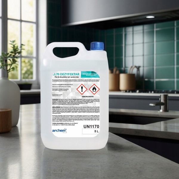 Наш дезінфікуючий засіб CL70 5L містить діючі речовини, які забезпечують ефективну дезінфекцію рук та поверхонь: