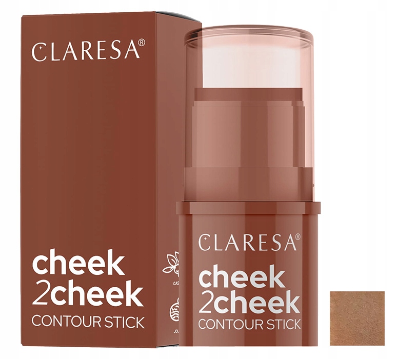 CHEEK 2 CHEEK - Contour Stick від CLARESA. Бронзер. Він веганський, не тестований на тваринах і не має аромату. Він має приємну кремоподібну формулу, яка легко наноситься та змішується зі шкірою. Ідеально підходить для контурування та моделювання форми обличчя. Забезпечує плавні та рівні переходи без смуг або плям на шкірі. Додавання олії касторової та жожоба ефективно живить, зволожує та доглядає за чутливою шкірою обличчя. Косметика не містить спирту та мікропластику.