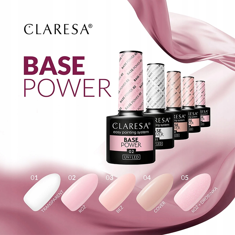 Відповідь: Основні особливості Claresa Power Base Гібридна база має середньо-густу консистенцію, чудову адгезію завдяки спеціальному складу, стійкість до 3 тижнів, зміцнення та зміцнення натуральної нігтьової пластини. , а також камуфляжний ефект, який візуально вирівнює колір нігтьової пластини.