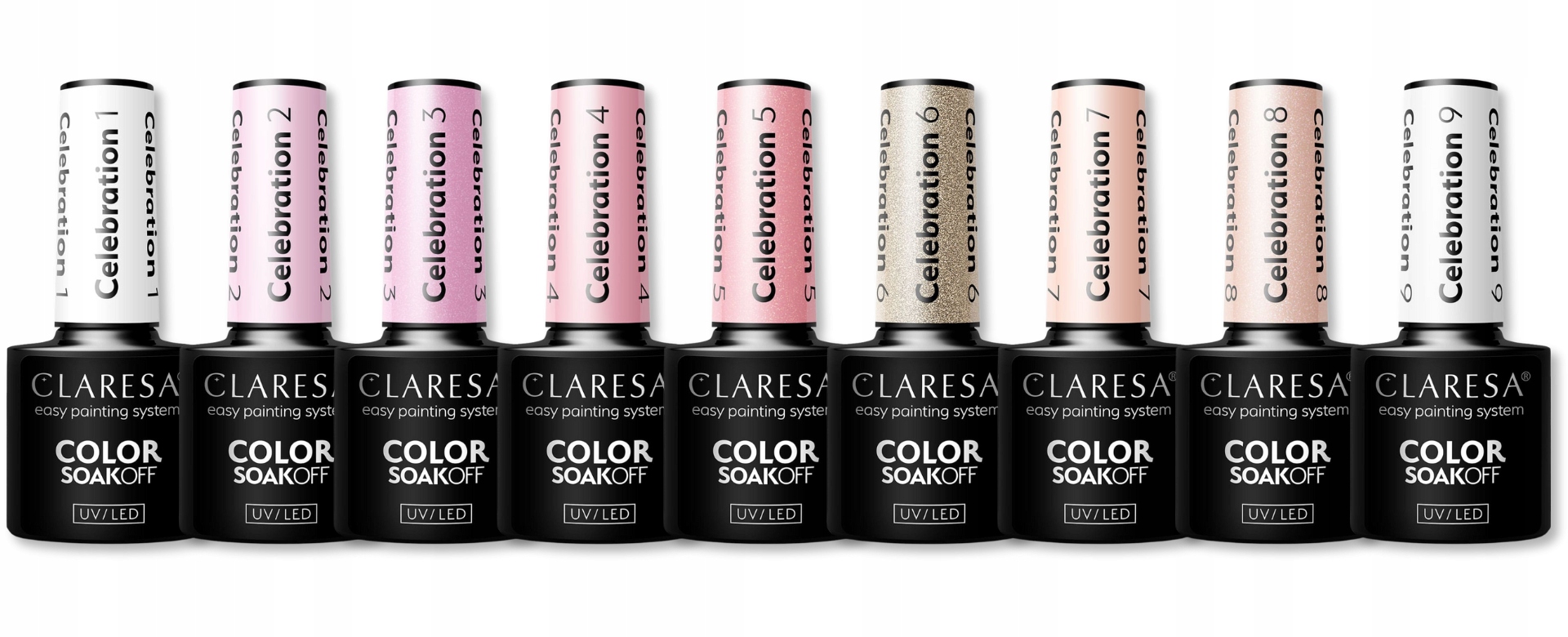 ⭐НАБІР З 9 ГІБРИДНИХ ЛАКІВ CLARESA CELEBRATION HYBRID POLISHES PINK WHITE GOLD