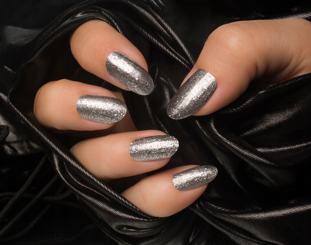 Гібридні лаки для нігтів, що переливаються, з меншими та більшими частинками блиску.