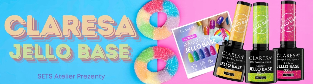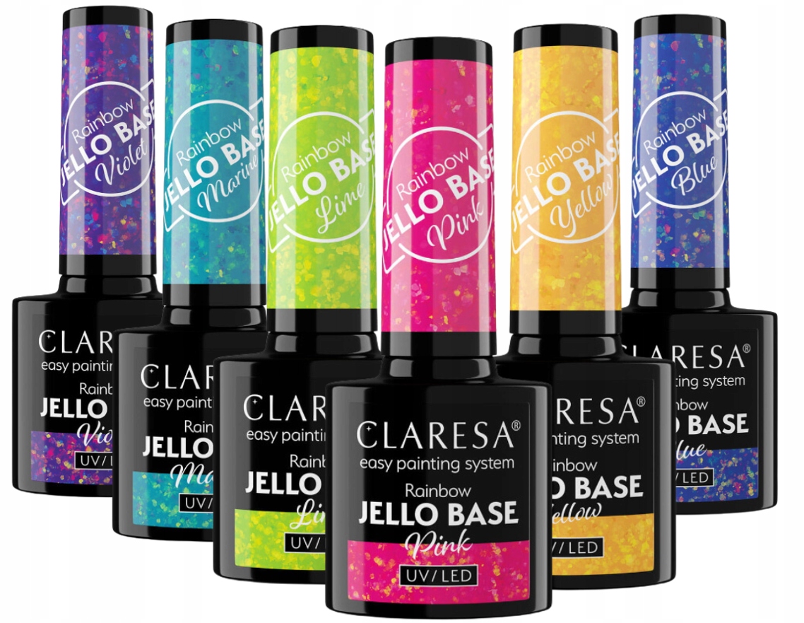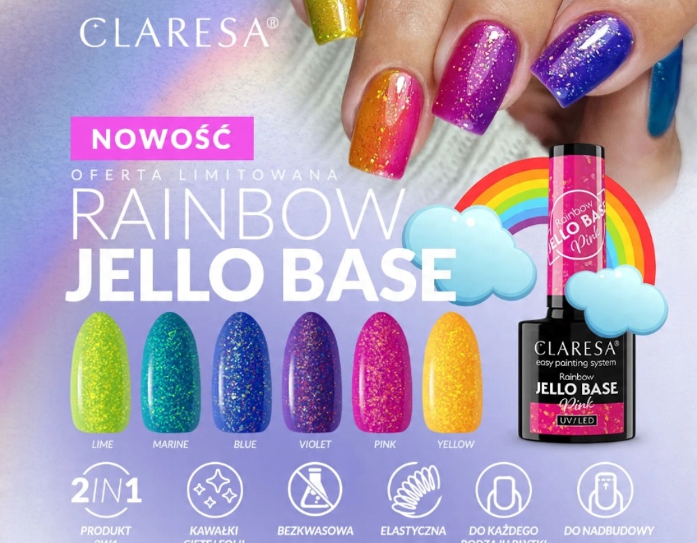 CLARESA RAINBOW JELLO BASE ZESTAW BAZA HYBRYDOWA Z DOBINKAMI BŁYSZ FOLII
