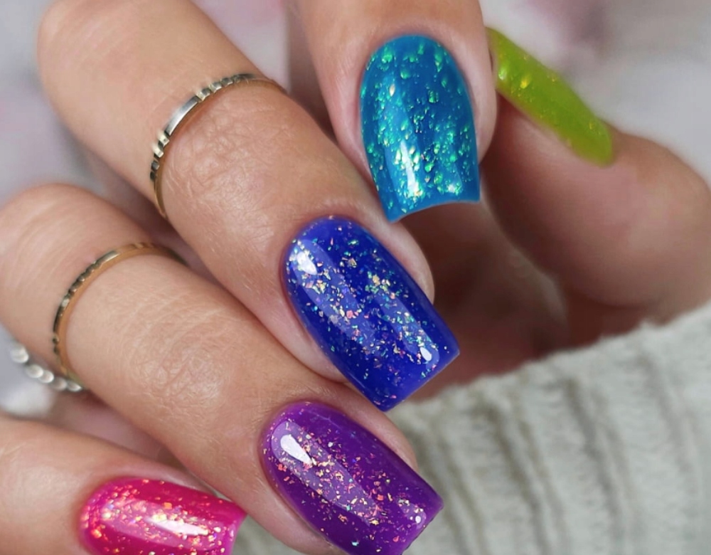 - насичений колір з блискучими частинками фольги
