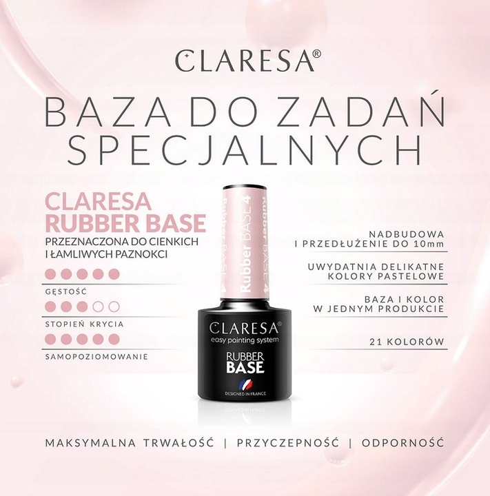 ✅ Каучукову базу CLARESA можна використовувати як стандартну базу під гібрид, нарощувати пошкоджений ніготь, вирівнювати будь-які нерівності нігтьової пластини та вирівнювати колір.
