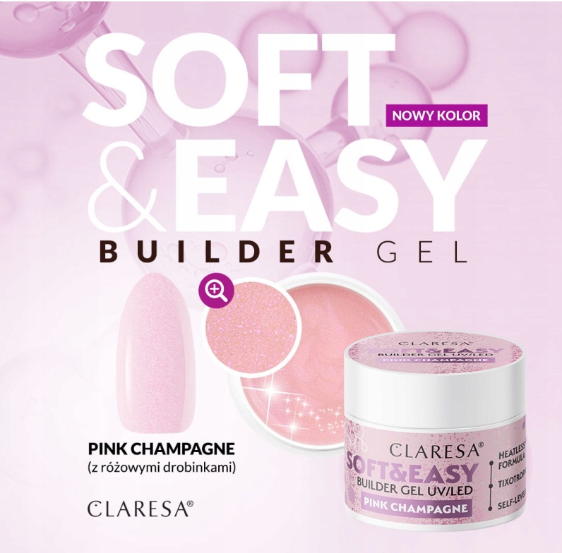 CLARESA Soft & Easy 90g ŻEL BUDUJĄCY DO PAZNOKCI PINK CHAMPAGNE SAMOPOZIOMU