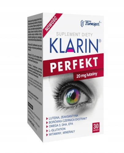 Фармапол Кларін Перфект - це дієтична добавка, яка допомагає зберегти здоров'я очей. Він призначений для дорослих. Це гарне доповнення до раціону в щоденному догляді за очима, особливо у випадку людей, які працюють за комп’ютером, проводячи багато годин за кермом, з порушеннями зору в сутінках, працюючи в поганому освітленні або змушені зосереджувати довгий зір -зір.