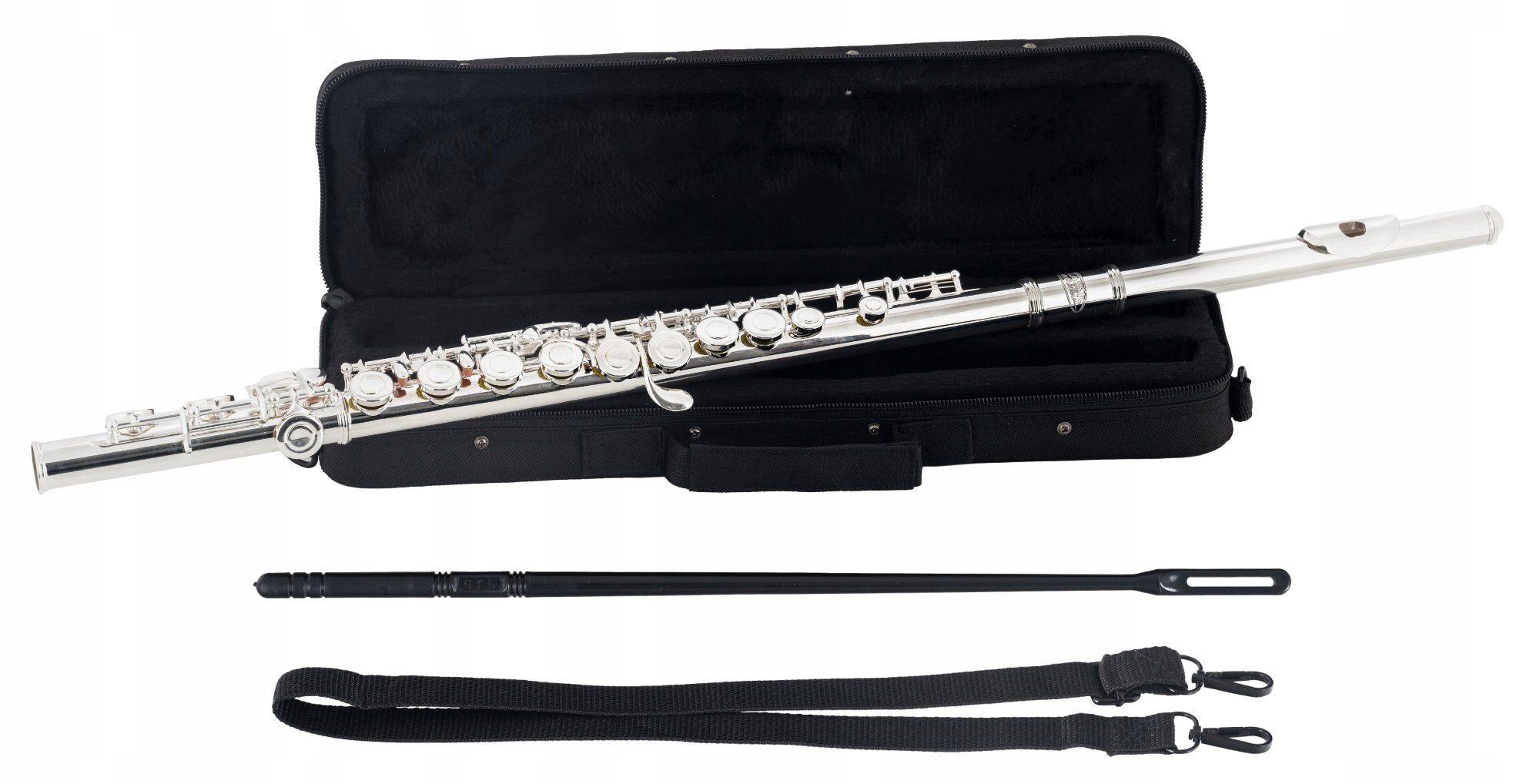 Поперечна флейта в ладі C із закритими клапанами, механікою E, легким відгуком і точним інтонуванням. Матеріал нікель, срібло, колір срібло. У комплект також входить паличка для протирання, чищення і чохол. Ідеальний інструмент для початківців.
