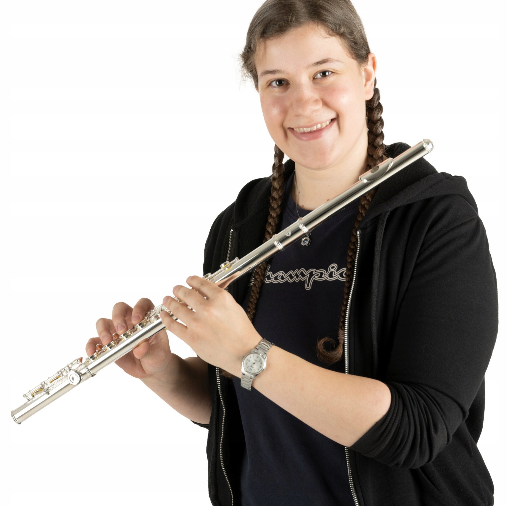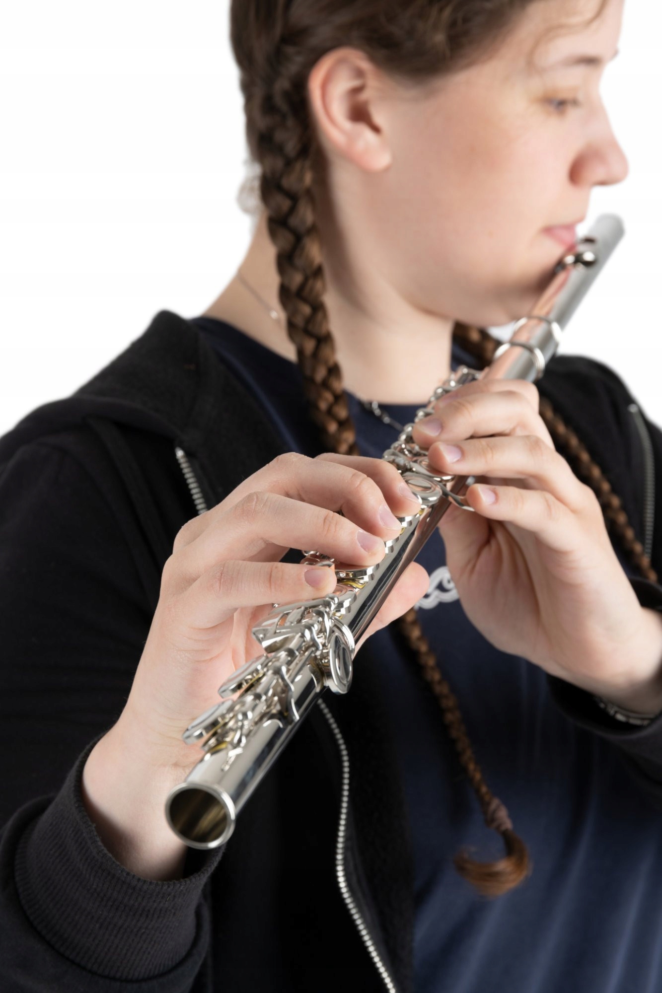 Поперечна флейта в ладі C із закритими клапанами, механікою E, легким відгуком і точним інтонуванням.