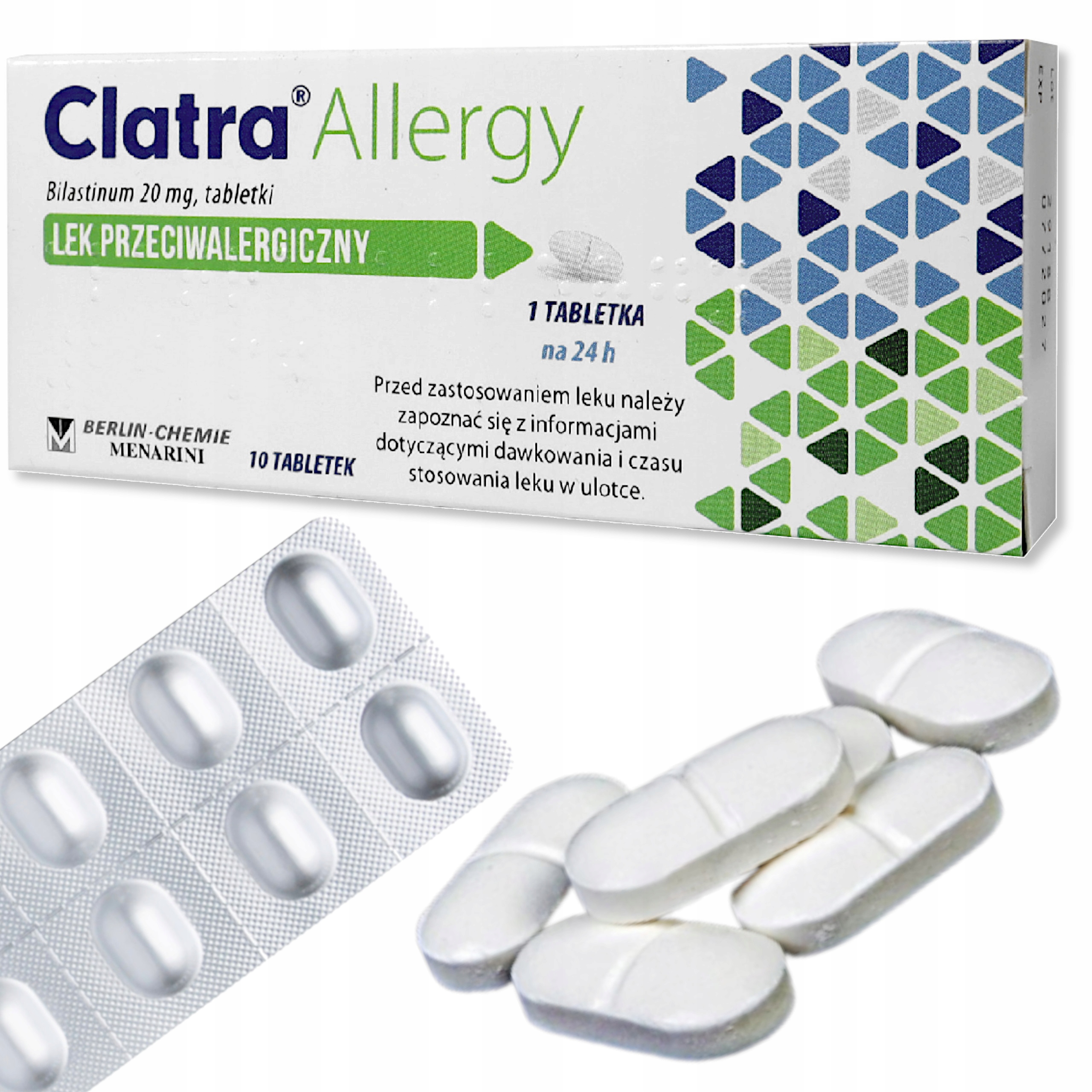 Клатра Алерджи (Білакстен) 20 мг — антигістамінний препарат, що відпускається без рецепта. Полегшує симптоми сінної лихоманки (включаючи чхання, свербіж у носі, сльозоточивість, закладеність носа) та інших форм алергічного риніту. Препарат застосовують для лікування шкірних висипань із сверблячкою (кропив’янка).