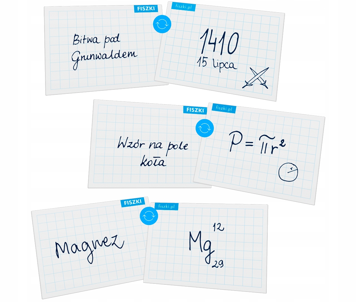 Сітка полегшує додавання інформації та ідеально підходить для розміщення числових даних або діаграм. Більше інформації про те, як правильно створювати власні картки, можна знайти в посібнику «Навчись вчитися» або на blog.fiszki.pl/metoda/powiedz-fiszek/.