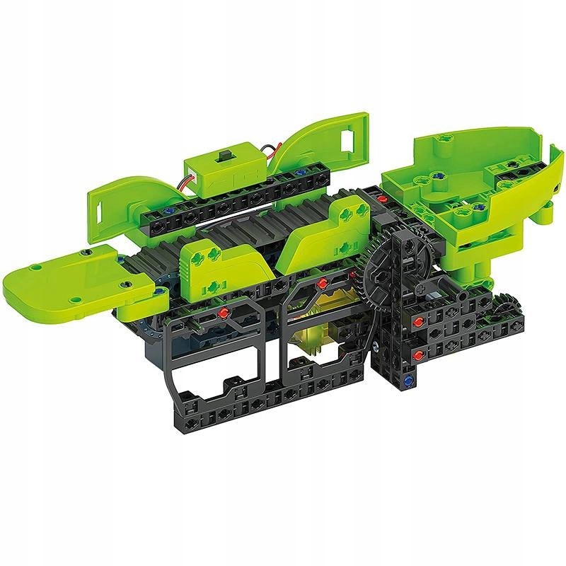 - Елементи, що входять до набору включає: колеса шестерні, ремені, модуль приводу, панелі та електродвигун для збирання, демонтажу та повторного збирання, усі можливі моделі.