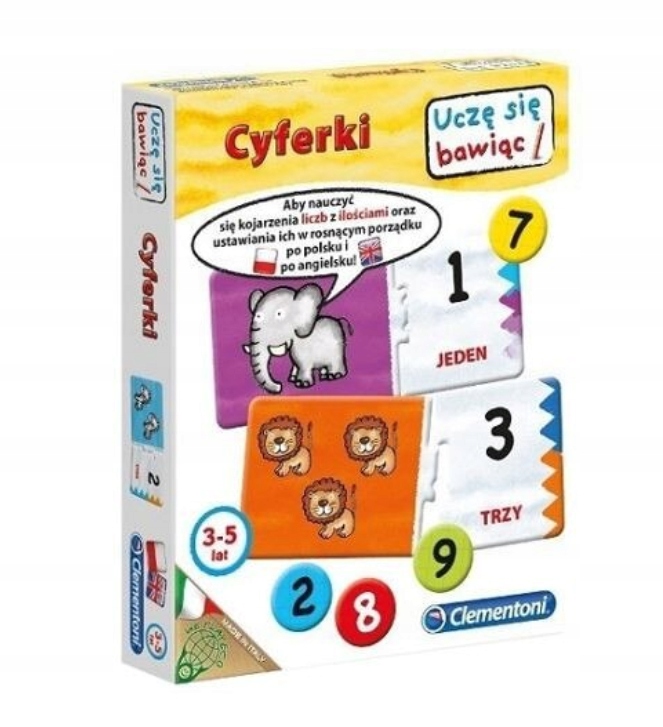 Просматривая «CLEMENTONI РОЗВИВАЮЧА ГРА ЦИФЕРКИ 3 РОКИ+», вы можете быть уверены, что данный товар из каталога «Словесные и числовые» будет доставлен из Польши и проверен на целостность. В цене товара, указанной на сайте, учтена доставка из Польши. Внимание!!! Товары для Евросоюза, согласно законодательству стран Евросоюза, могут отличаться упаковкой или наполнением.