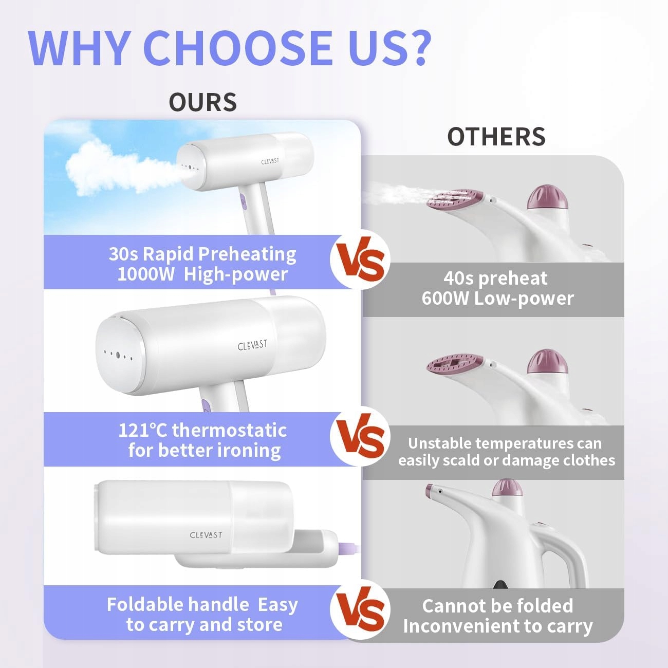 Легке видалення зморшок - Покращений пароплав 1000 Вт може нагріватися всього за 30 секунд і виробляє сильну пару. Цей пароплав для одягу також оснащений знімним прозорим резервуаром для води потужністю 150 мл, що дозволяє безперервне випаровування протягом 10 хвилин і забезпечує швидке та просте зняття зморшок. Горизонтальна пара дозволяє відмінні результати в місцях майже притиснутих, таких як манжети та комір. Висока якість