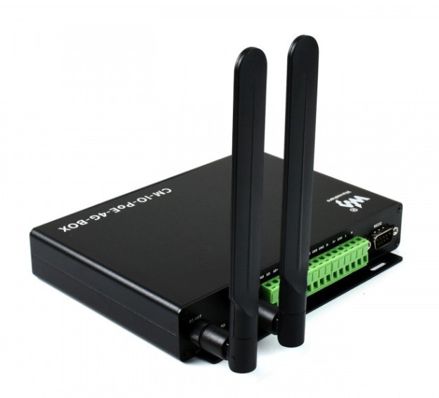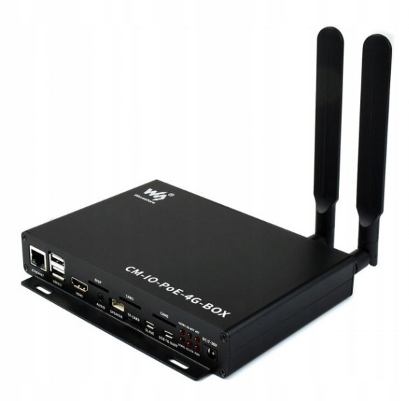 CM-IO-POE-4G-BOX є промислова базова плата IoT, розроблена для обчислювального модуля Raspberry Pi, яка була укладена в алюмінієвий корпус. Він використовує чіп SIM7600G-H, що забезпечує зв’язок 4G, 3G, 2G, і має вбудований порт Ethernet 10/100M з функцією PoE та модуль WiFi 2,4 ГГц.