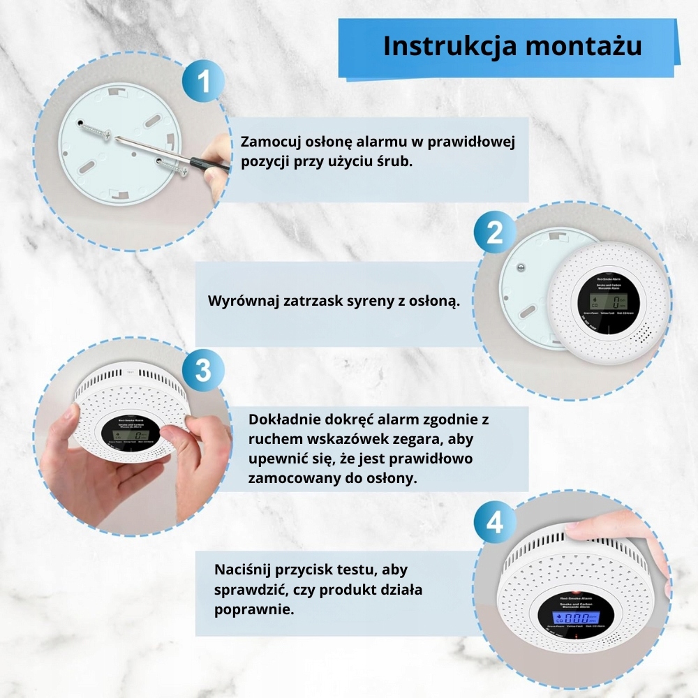 Датчик JKD-513COM — це сучасний сертифікований пристрій, який забезпечує подвійний захист вашого будинку. Завдяки поєднанню фотоелектричного датчика диму та електрохімічного датчика CO він миттєво реагує на пожежу та присутність небезпечного чадного газу.