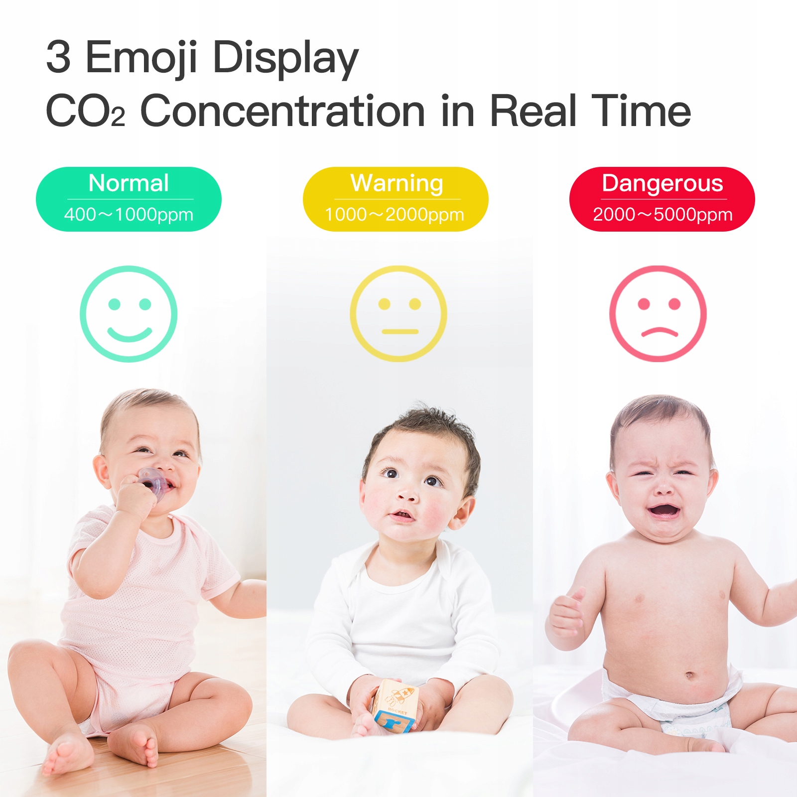 - 【Рівень концентрації CO2 і звуковий сигнал 】 Цей детектор CO2 працює з < b >3 рівні концентрації CO2 - нормальний (400-700 ppm), попереджувальний ( 700-1500 ppm) і небезпечний ( 1500 -5000 ppm) ), і він подає звуковий сигнал, коли виявлена концентрація CO2 перевищить безпечне значення, яке ви відрегулювали для своєчасного моніторингу безпеки вашого будинку. Крім того, цей тестер повітря розроблено з функцією калібрування для більш точного моніторингу.
