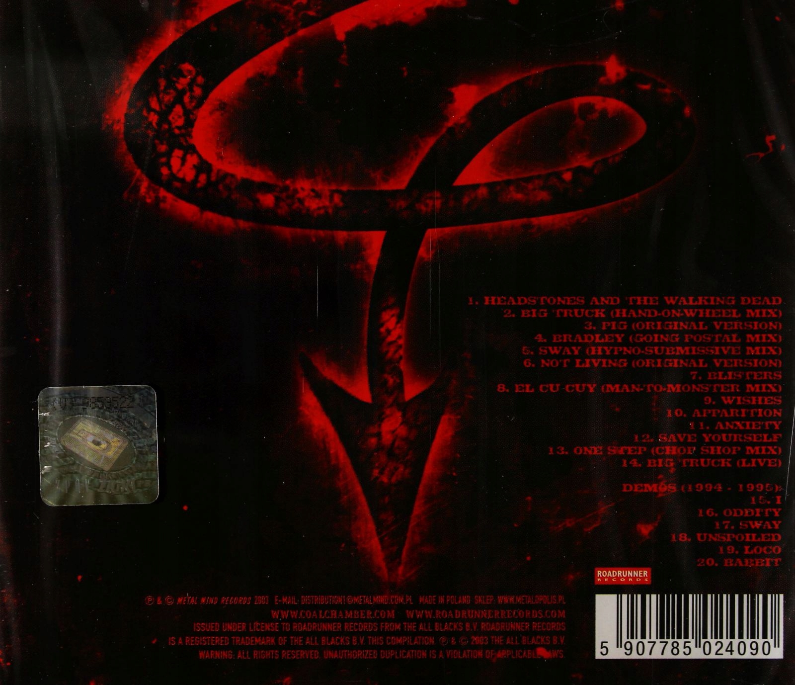 Просматривая «COAL CHAMBER: GIVING THE DEVIL HIS DUE [CD]», вы можете быть уверены, что данный товар из каталога «[rubrica_name]» будет доставлен из Польши и проверен на целостность. В цене товара, указанной на сайте, учтена доставка из Польши. Внимание!!! Товары для Евросоюза, согласно законодательству стран Евросоюза, могут отличаться упаковкой или наполнением.