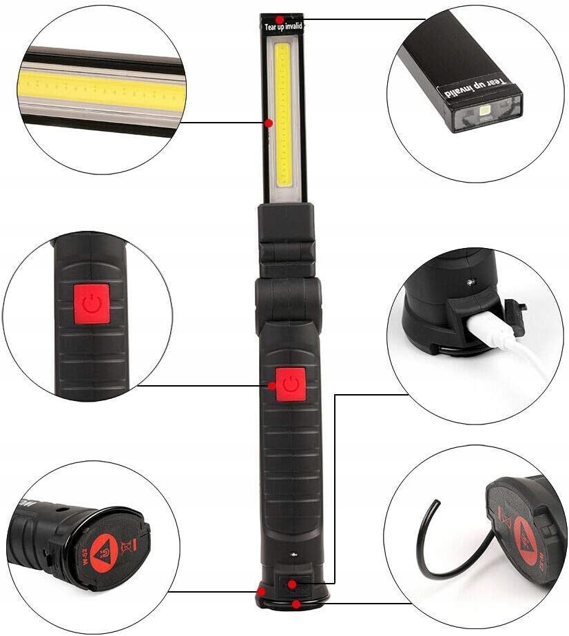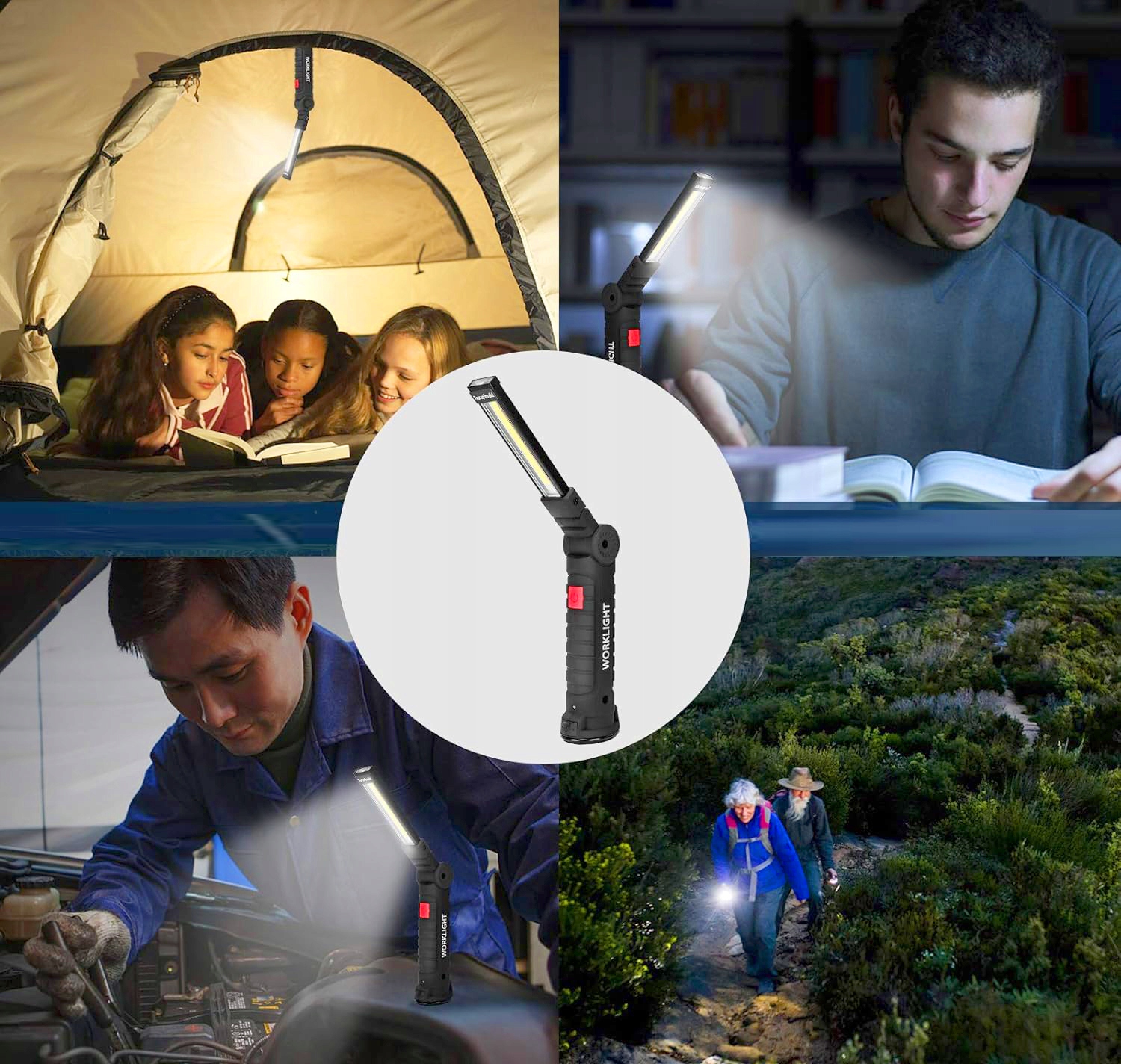 - Багатофункціональний — корисний у майстерні, гаражі, на кемпінгу чи в екстрених випадках ліхтарик .