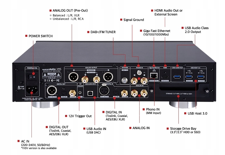 Оснащений з 2 вбудованими мікросхемами ESS Sabre Reference DAC ES9018K2M - окремо для правого і лівого каналів. 64-розрядний XMOS, генератор TCXO та високоякісний тороїдальний трансформатор, ізольовані джерела живлення та досвід науково-дослідних розробок у схемотехніці X45 забезпечать чудовий звук.