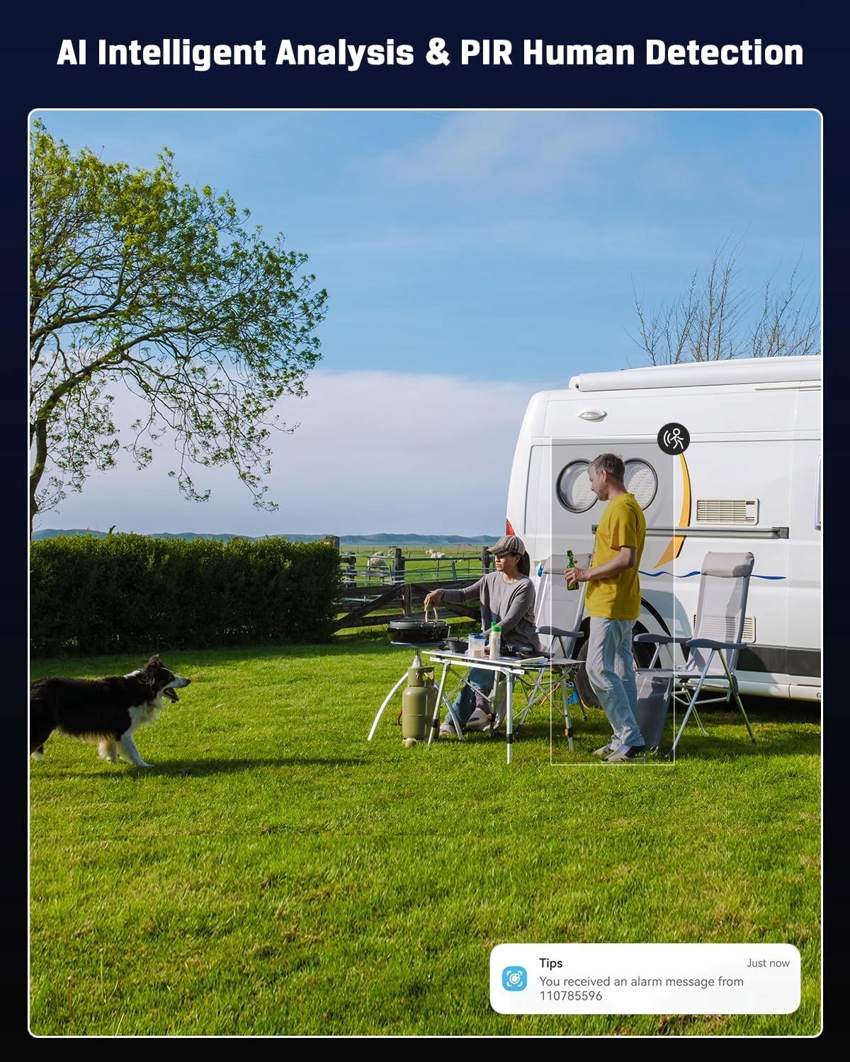 Cococam 3G/ 4G LTE без безпеки Wi -Fi, Sunny 2K Safety Camera Outdoor, Wireless, PIR DECORKITER, AI розпізнавання, SIM -карта в наборі, працює з Alexa