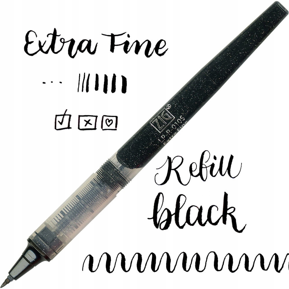 Гнучкий надзвичайно тонкий наконечник. Надзвичайно точний. Реагування на зміни тиску та швидкості письма зміною товщини лінії. Чорнило на водній основі доступне в різних кольорах.