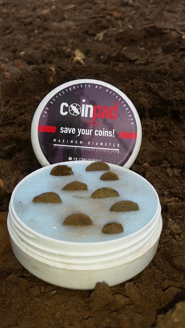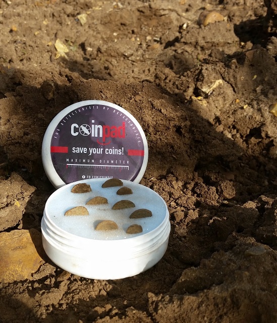 Коробка складається з обтічної «банки», що закручується, і губки з багатьма паралельними вирізами. Знайдені монети вставляються в губку і з цього моменту отримують ідеальний, 100% захист від подряпин, згинів, надломів, відколів, відшарування патини тощо. З Coinpad XL ви можете бігати і стрибати, а монети не можуть навіть рухатися. Він може вміщувати монети діаметром до 39 мм, а це найбільше серед дисків, які ми знаходимо.