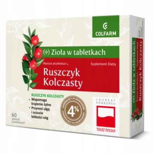 Дієтична добавка звичайний віник містить екстракт звичайний, що містить 4% рускогенінів. . Доповнення щоденного раціону цим інгредієнтом допомагає зберегти здоров’я ніг. Він також підтримує правильний венозний кровообіг, освіжає та забезпечує полегшення, що повертає ногам легкість. Крім того, віник м'ясника сприяє виведенню води нирками.