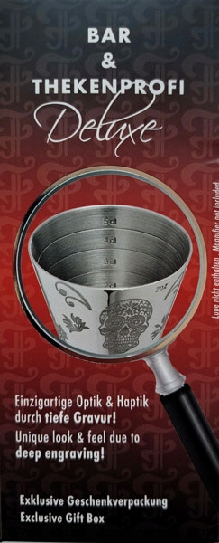 вигравіровано в стилі бару, в прекрасному стрункому пісочному годиннику, посеред практичної "талії" для легкого тримання джигера. Місце або домашнє плече, допомагає ідеально вимірювати та готувати напої та коктейлі.