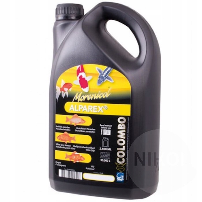 Alparex ефективний проти невидимих паразитів, які викликають сірий колір шкіри, таких як Chilodonella та Триходін. Білі плями та грибки також можна ефективно лікувати.