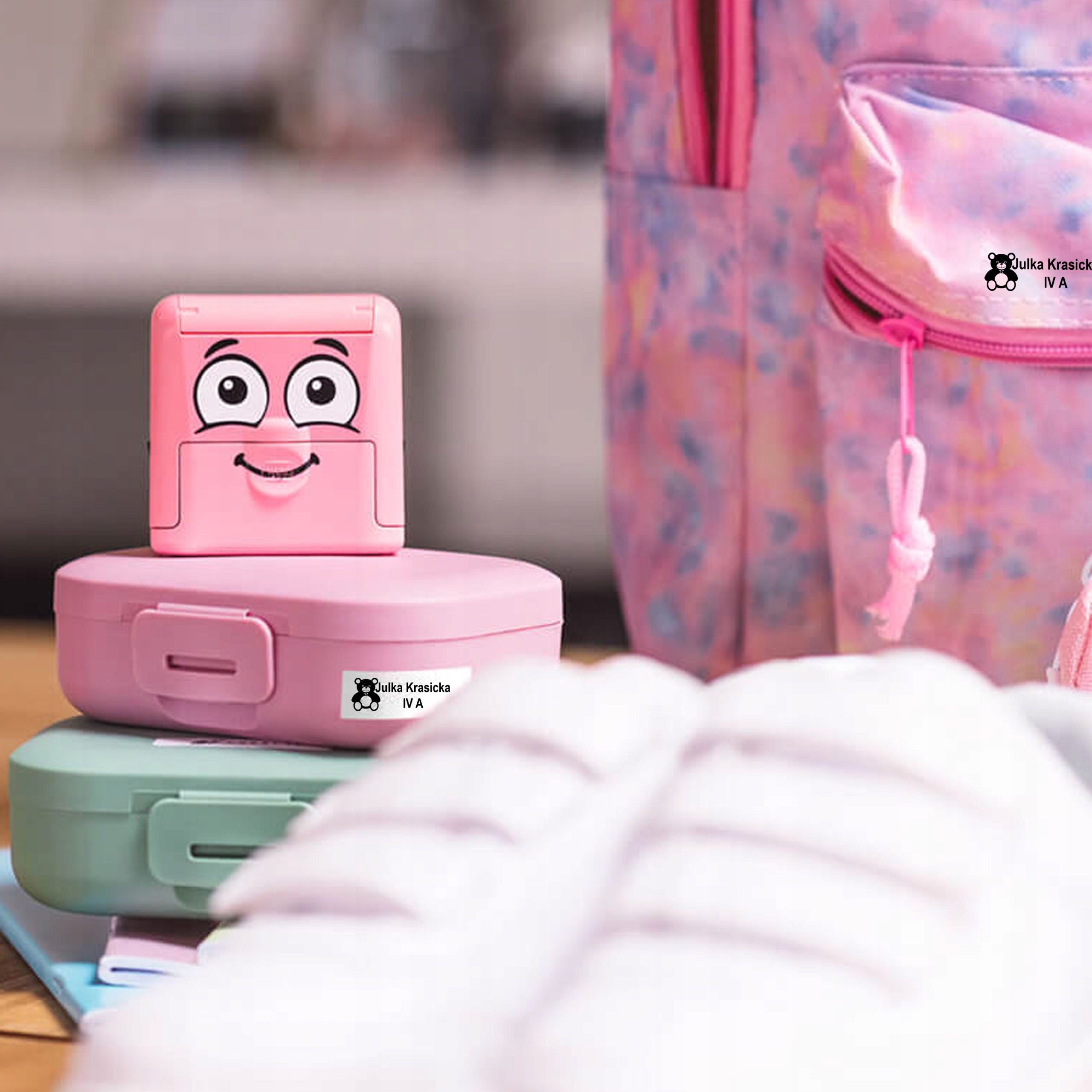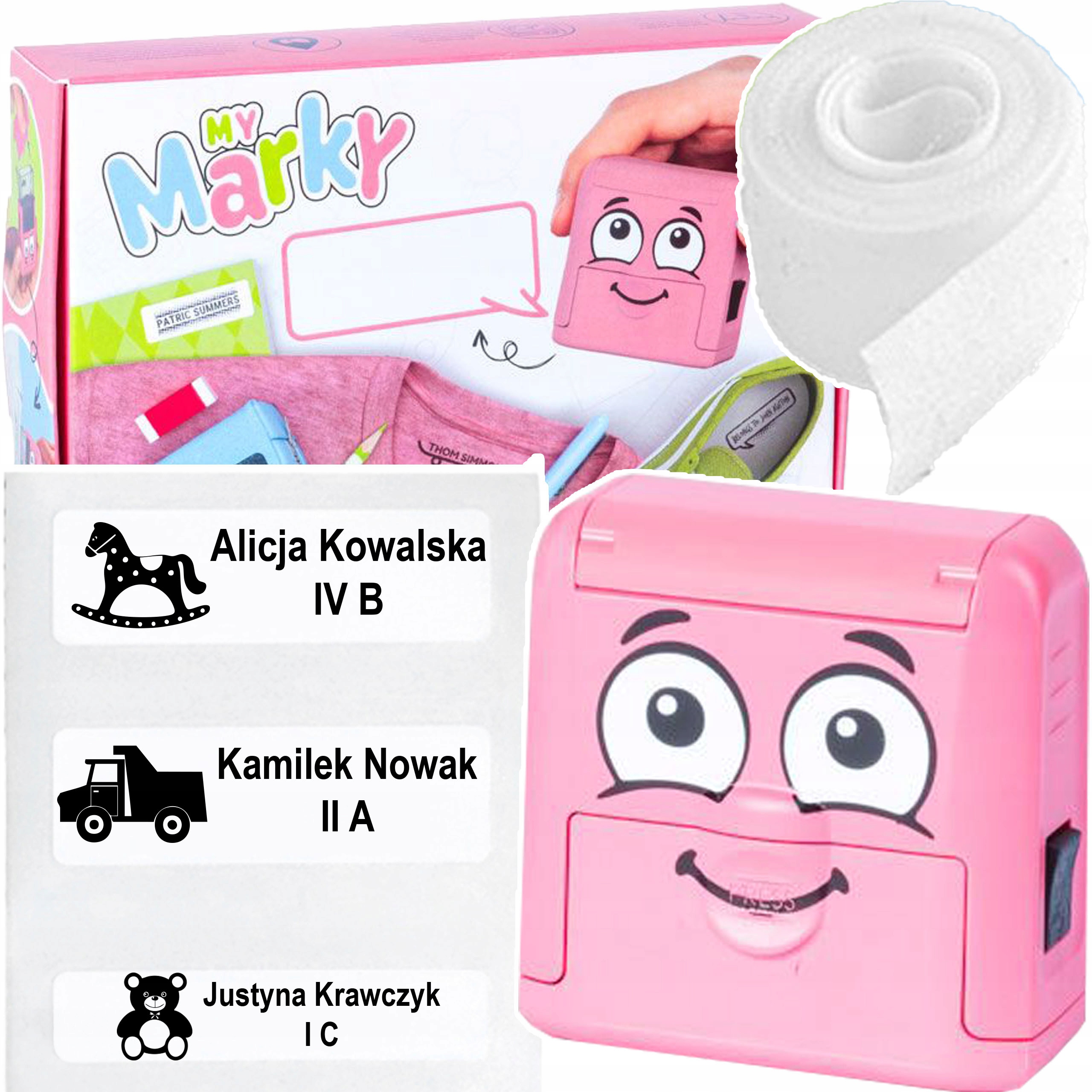 MARKY підходить для дитячого текстилю, спортивного обладнання, шкільного приладдя, взуття та всіх абсорбуючих поверхонь. Штамп MY MARKY оснащений вбудованою подушкою, яка містить спеціалізовані водонепроникні чорнила для текстилю та дозволяє робити до 1000 відбитків.