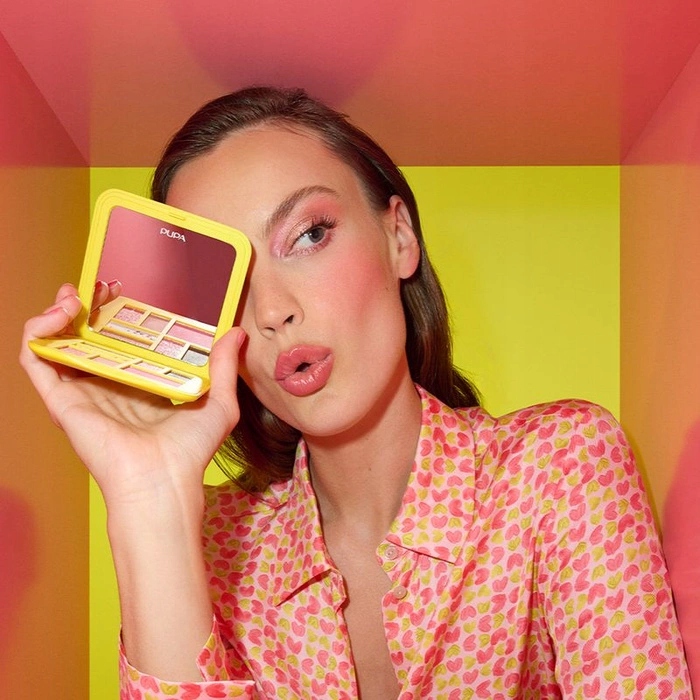 Використовуйте матові або атласні тіні, щоб створити ідеальне затінення та підсилити вигляд. Використовуйте тіні HYPNOTIC GAZE, щоб створити точки світла з незвичайними відблисками на повіці. Використовуйте відтінок METAL FOIL, щоб створити багатовимірний металевий 3D-ефект. Змішайте частинки, що містяться у відтінку CAPTIVATING GEMS, щоб створити унікальні неповторні відтінки. Нанесіть рум’яна на вилиці для здорового та свіжого вигляду.