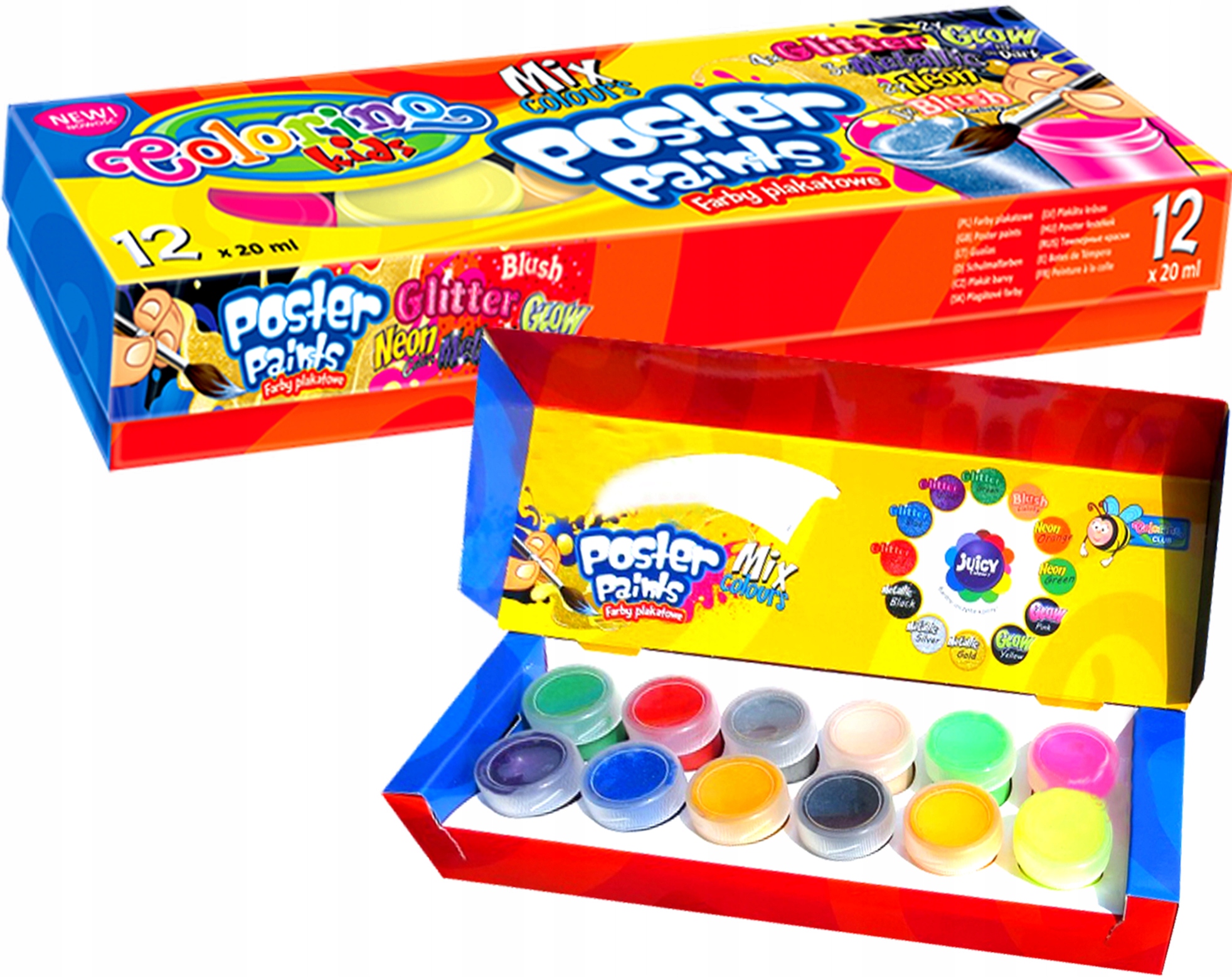 COLORINO GLOW IN THE DARK ПЛАКАТНІ ФАРБИ GLITTER NEON 12 кольорів