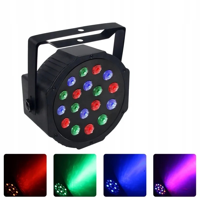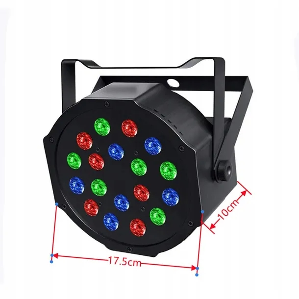 Фара оснащена вісімнадцять діодів RGB з 1 Вт по 1 Вт. Усі вони забезпечують сильне світло з далеким діапазоном! Завдяки широкому асортименту кольорів (RGB), це чудово, як декоративне освітлення для ді -джеїв, музичних гуртів, на приватному, весільному та навіть клубі!