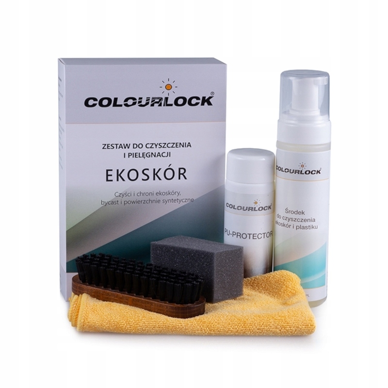 НАБІР COLOURLOCK МІСТИТЬ ВСЕ, ЩО ВАМ ПОТРІБНО ДЛЯ ОЧИЩЕННЯ ТА ДОГЛЯДУ ЗА ПОВЕРХНЯМИ З ЕКОЛОГІЧНОЇ ШКІРИ ТА ПЛАСТИКУ. СИЛЬНО ЗАБРУДНЕНІ ПОВЕРХНІ ЗНОВУ СТАЮТЬ ЧИСТИМИ. ДЛЯ ОЧИЩЕННЯ ПОВЕРХНІ ВИКОРИСТОВУЙТЕ М’ЯКУ ЩІТКУ, ЩО ВХОДИТЬ У НАБОР.