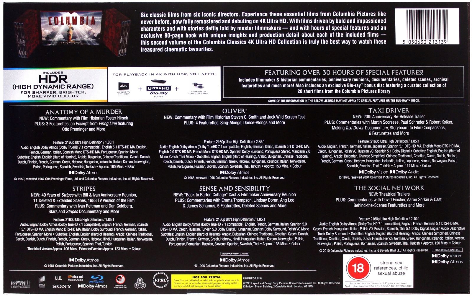Columbia Classics Collection 4K Ultra HD Том 2: Анатомія вбивства / Олівер! / Таксист / Смуги / Розум і чутливість / Соціальна мережа [BOX] [6xBlu-Ray 4K]+[Blu-Ray]