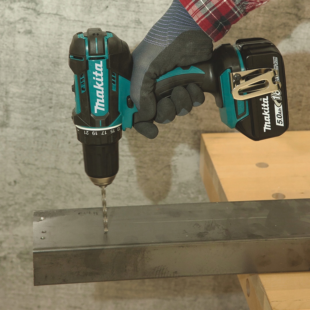 Акумуляторний дриль-шуруповерт Makita DDF482 призначений для професіоналів для проведення ремонтних і монтажних робіт, пов’язаних із свердлінням у дереві, металі та пластмасі. Інструмент також дозволяє точно затягувати різні типи гвинтових з’єднань завдяки 21-кроковому регулюванню крутного моменту