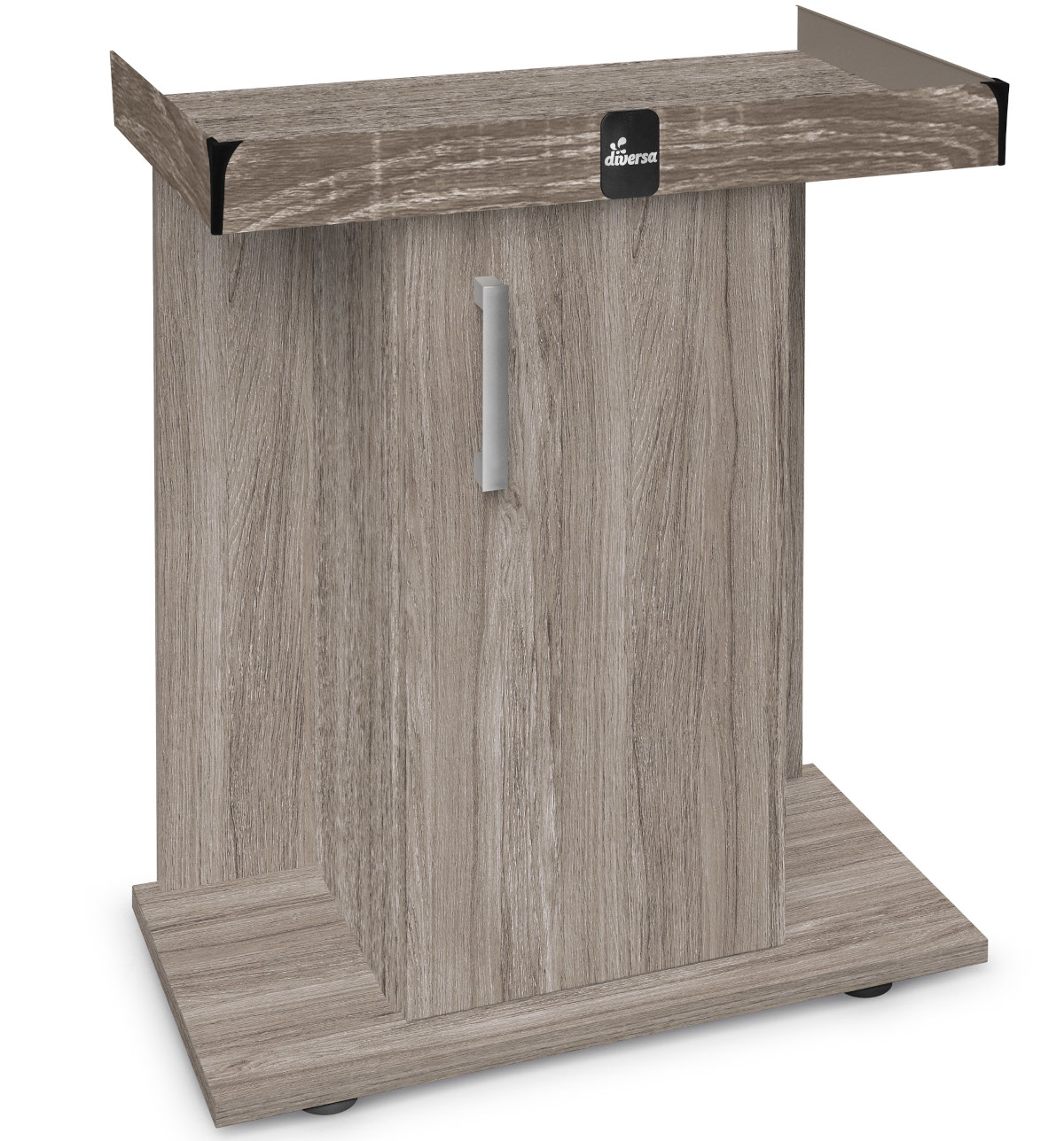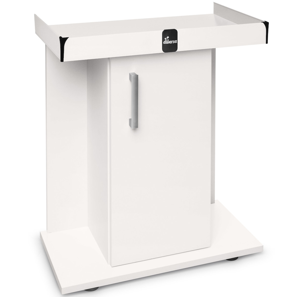 Продукт Diversa відрізняється винятково продуманим дизайном, створеним для зручності акваріуміста. Всередині є зручна полиця, що полегшує зберігання продуктів, хімії та необхідних акваріумних аксесуарів. Після його видалення ви також знайдете достатньо місця навіть для дуже великого зовнішнього фільтра або розміщення циліндра з набору CO2. Полиця, прихована за дверима, - ідеальне місце для зберігання препаратів, продуктів та всіх аксесуарів акваріуму. З обох боків кабінету є перерва, що є додатковим місцем для зберігання необхідних предметів у акваріумі.