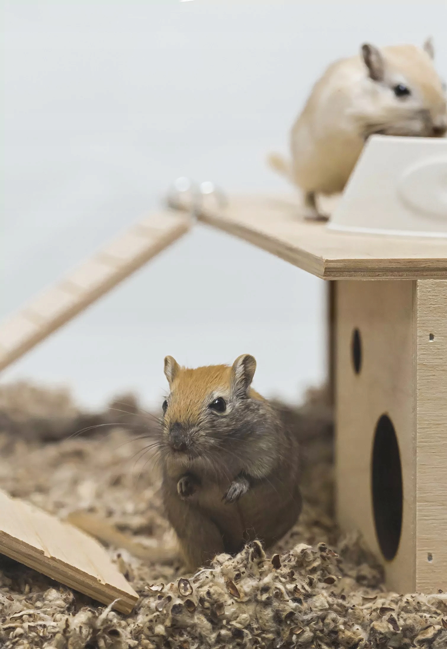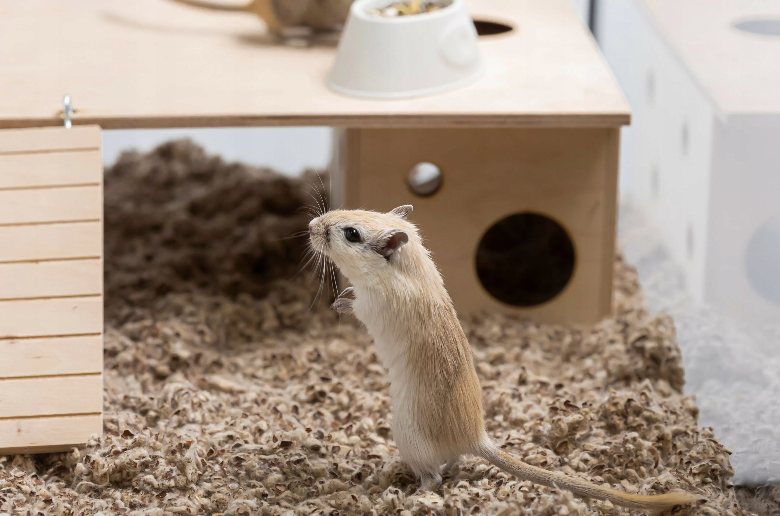 Покладіть у клітку відповідний шар підстилки - для мишей, щурів і кроликів приблизно 5-7 см, для піщанок приблизно 12-15 см, а для хом'яків принаймні 20 см. У випадку з кроликами видаляйте засохлі фекалії кожні 2 дні, щоб ви могли використовувати продукт до 3-4 тижнів.