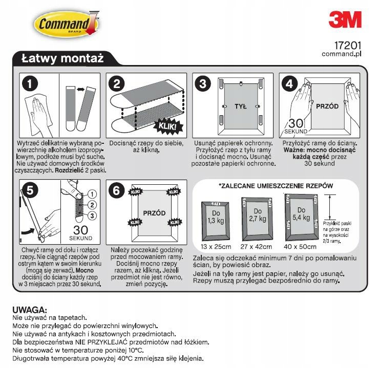 Просматривая «COMMAND 3M ЛИПУЧКИ ДЛЯ ПОДВЕШИВАНИЯ, 1,8 КГ 17202», вы можете быть уверены, что данный товар из каталога «Настенные крепления» будет доставлен из Польши и проверен на целостность. В цене товара, указанной на сайте, учтена доставка из Польши. Внимание!!! Товары для Евросоюза, согласно законодательству стран Евросоюза, могут отличаться упаковкой или наполнением.