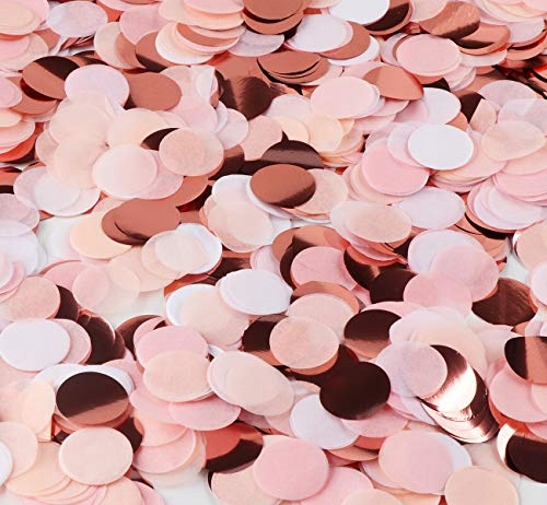 - Цей папір для конфетті виготовлено з блискучої фольги та цигаркового паперу в чудовому поєднанні білого та рожевого кольорів. золотий, світло-рожевий, світло-помаранчевий в 4-х пастельних кольорах. Конфетті розміром 2,5 см, 8000 шт., відповідає вимогам до 10–20 прикрас для столу.